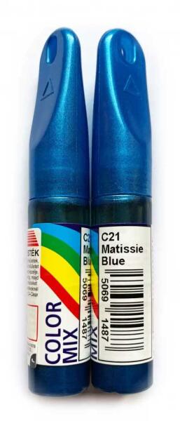 COLOR MIX javítófesték, javítóstift, Ragyogó kék (Matissie Blue) 12,5ml Kisebb felületek, karcolások javításához. Gyorsan szárad, kemény felületet ad. A javítófesték nem gyári színkódos egyezésű, mégis a futó színek nagy részével 95%-os egyezést ad, amely egy apró karcolás, vagy kõfelverõdés okozta sérülés esetén tökéletes megoldást ad. Igényesebb felületet elõször alapozóval kezelje, metálfestékeknél száradás után használjon fedõlakkot!