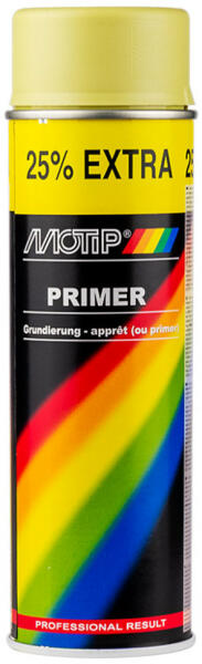 Motip 04053 Primer, alapozó spray, sárga, 500ml Jó töltőképességű, gyorsan száradó, szürke színű felület kiegyenlítő alapozó.