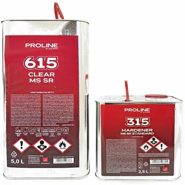 Professzionális 2K akrilátlátszó MS lakk PROLINE 615 közepes szárazanyag tartalommal. Nagy keménység, karcállóság és kiváló fényesség jellemzi. Ellenáll az UV sugárzásnak és az agresszív időjárási viszonyoknak, ami garantálja a festett felület hosszú távú kiváló megjelenését. Nagyon jól terül, gyors száradása pedig könnyű javítást tesz lehetővé, és lerövidíti azt az időt, amit a járműveknek a fényezőműhelyben kell tölteniük.